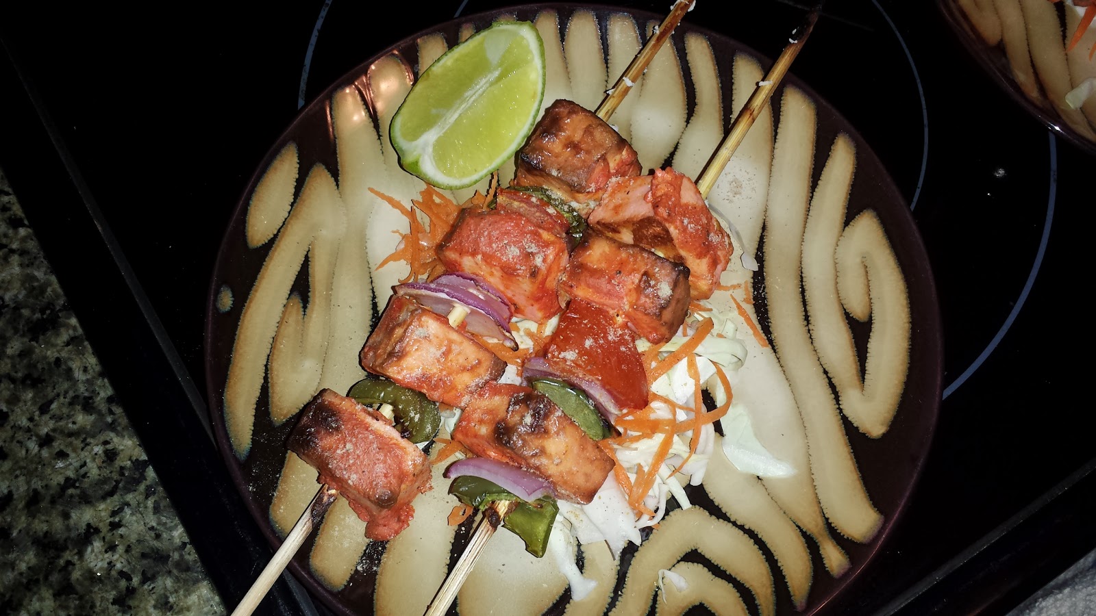 1-First mix all the ingredients in a empty bowl starting with curd(curd must be thick or else the marination will not hold to the paneer) so next add ginger garlic paste, salt, turmeric, chili powder, food color, oil, tandoori masala , kasturi methi and mix well. Now separate little bit of paste into another bowl to marinate the onion and bell pepper. And mix the rest masala with paneer and refridge them for 3 hours.
